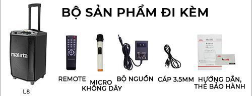 - Phụ kiện kèm theo: 01 micro không dây, remote, cáp sạc
