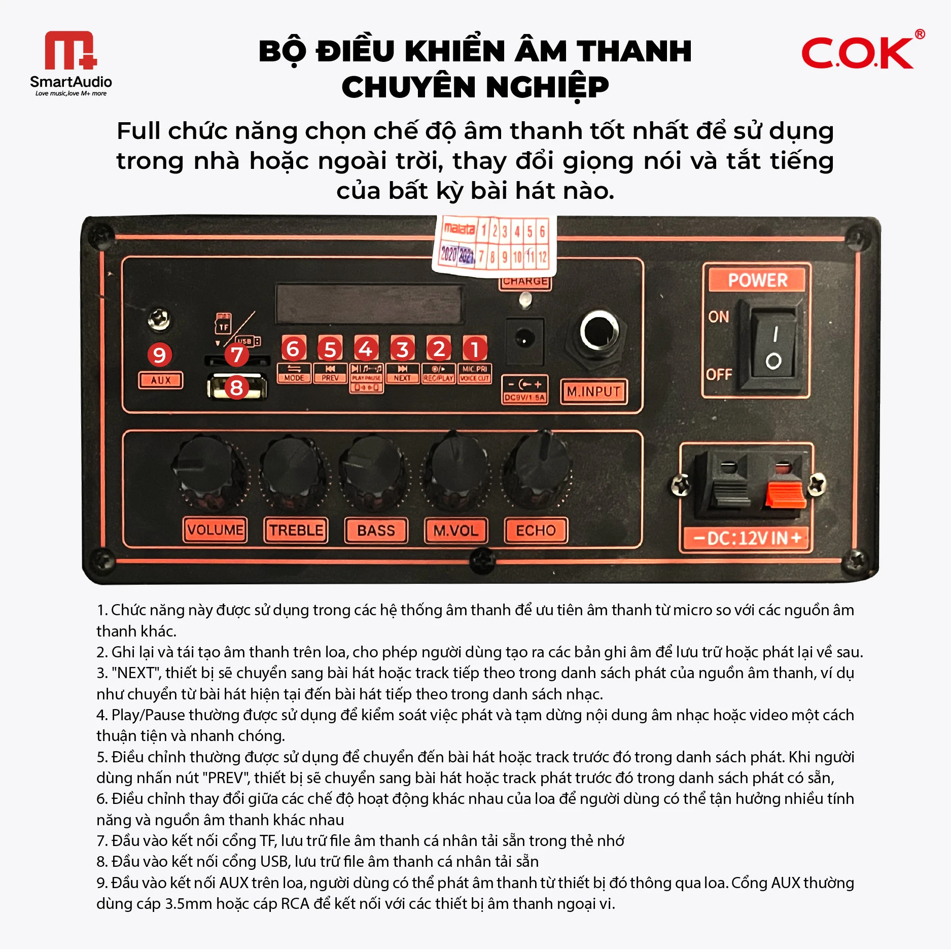 CÁC NÚT CHỈNH TRÊN LOA XÁCH TAY COK ST-9999