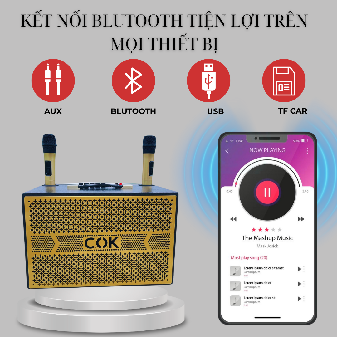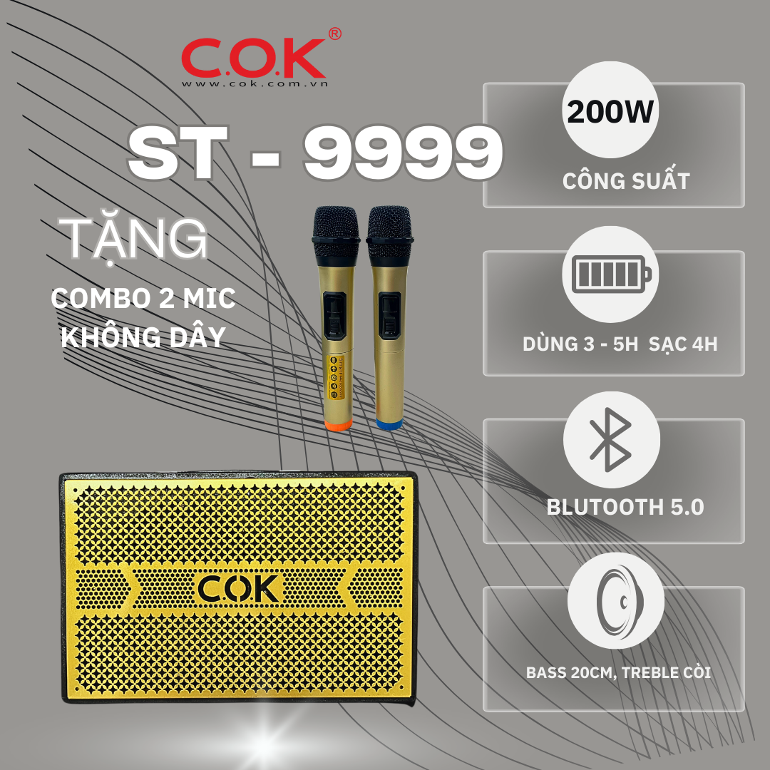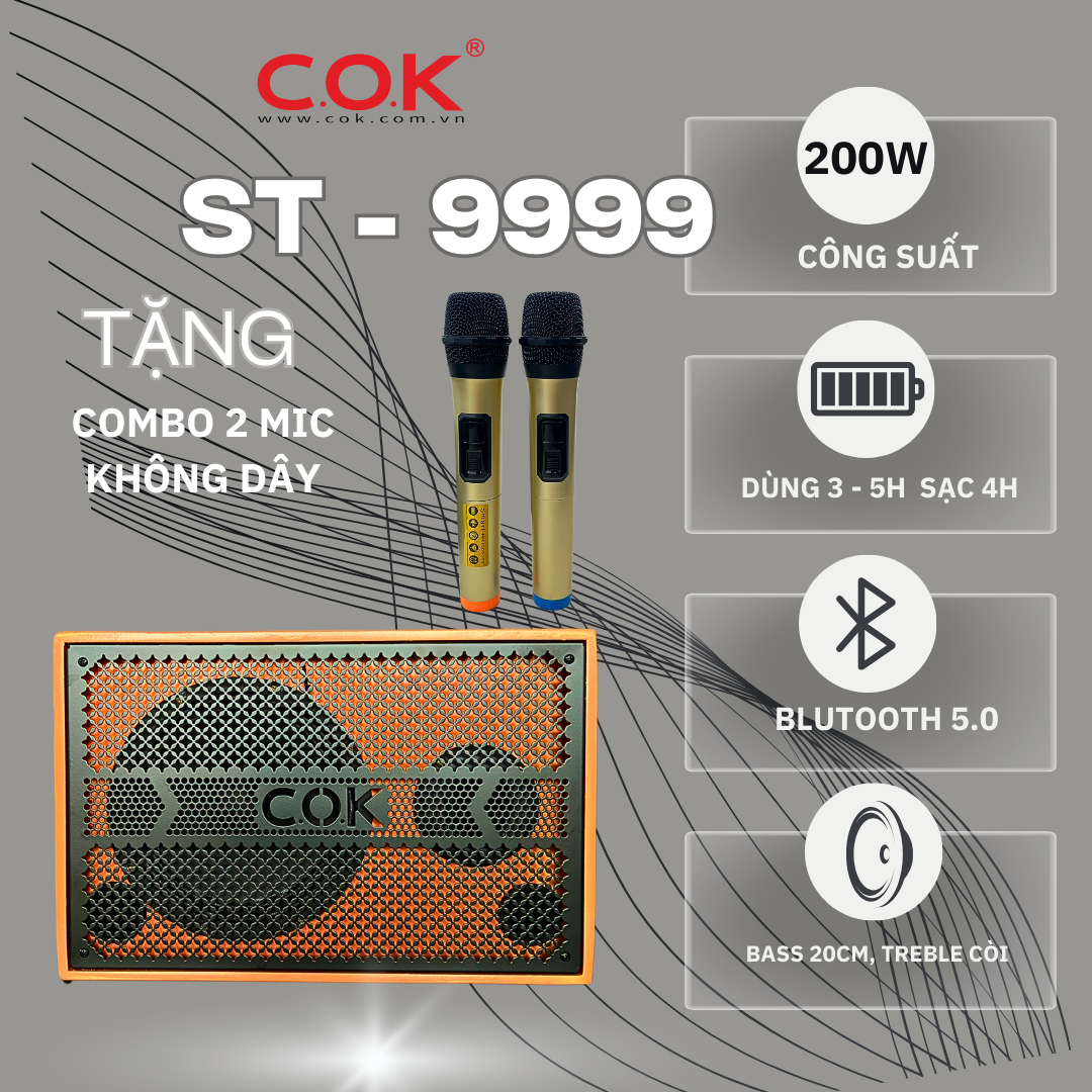 Loa Xách Tay C.O.K ST-9999 Hàng Chính Hãng Công Suất 300w Kết Nối Bluetooth (Tặng Kèm 2 Micro Bảo Hành 12 Tháng)