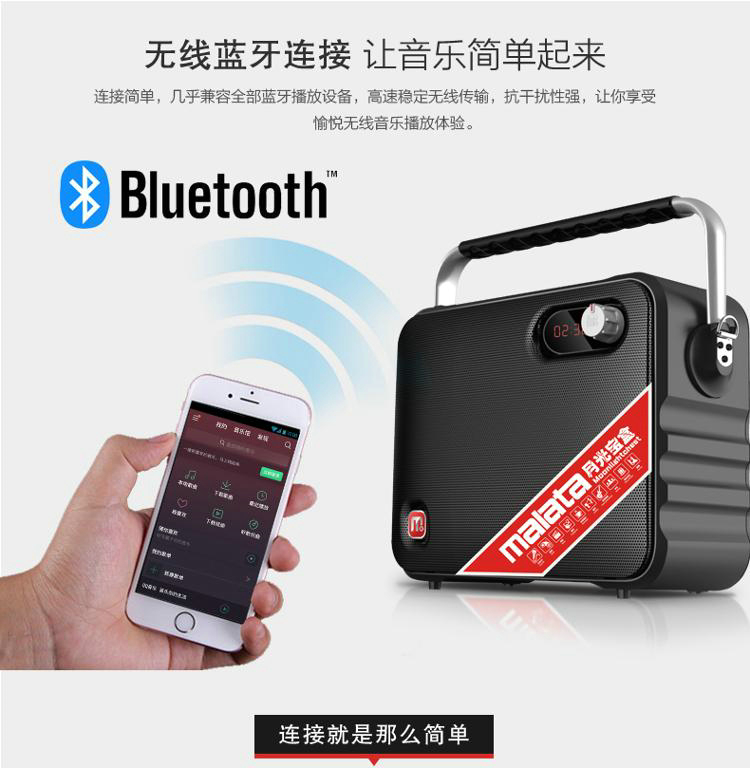 Loa âm thanh M+9001S có thể giống như 1 chiếc ba lô với âm thanh di động đi đôi với bạn. Kích thước nhỏ, công suất lớn! Được trang bị công nghệ âm thanh thông minh, micro tần số U. Đặt biệt âm thanh maximun vẫn không bị bể tiếng