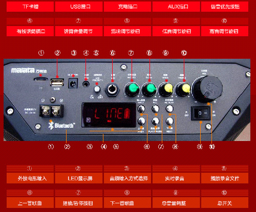 Xem hình ảnh của loa Loa kéo di động Malata 9017BY để thấy được tất cả các cổng kết nối nha