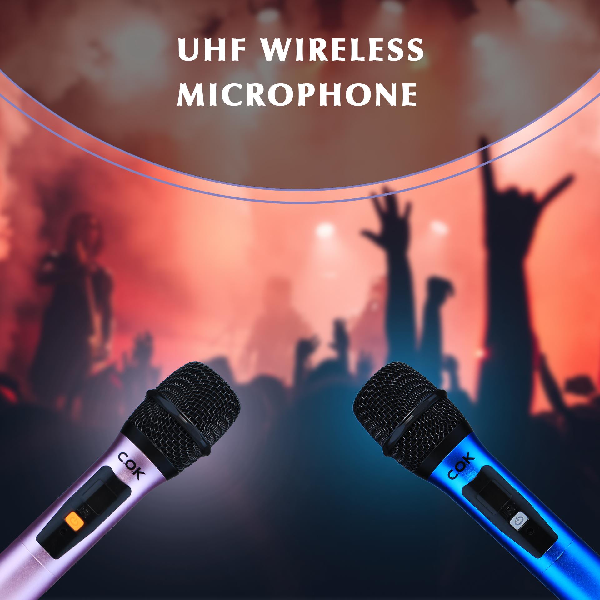 Micro không dây COK ST-232 Hồng Xanh là dòng sản phẩm micro có thể sử dựng cho các dòng loa kéo với 2 mic hát song ca đi kèm, kết nối không dây đơn giản, nhanh chóng, pin sạc dung lượng lớn đảm bảo hoạt động bền bỉ, hát thả ga mà không cần sạc quá nhiều lần.
